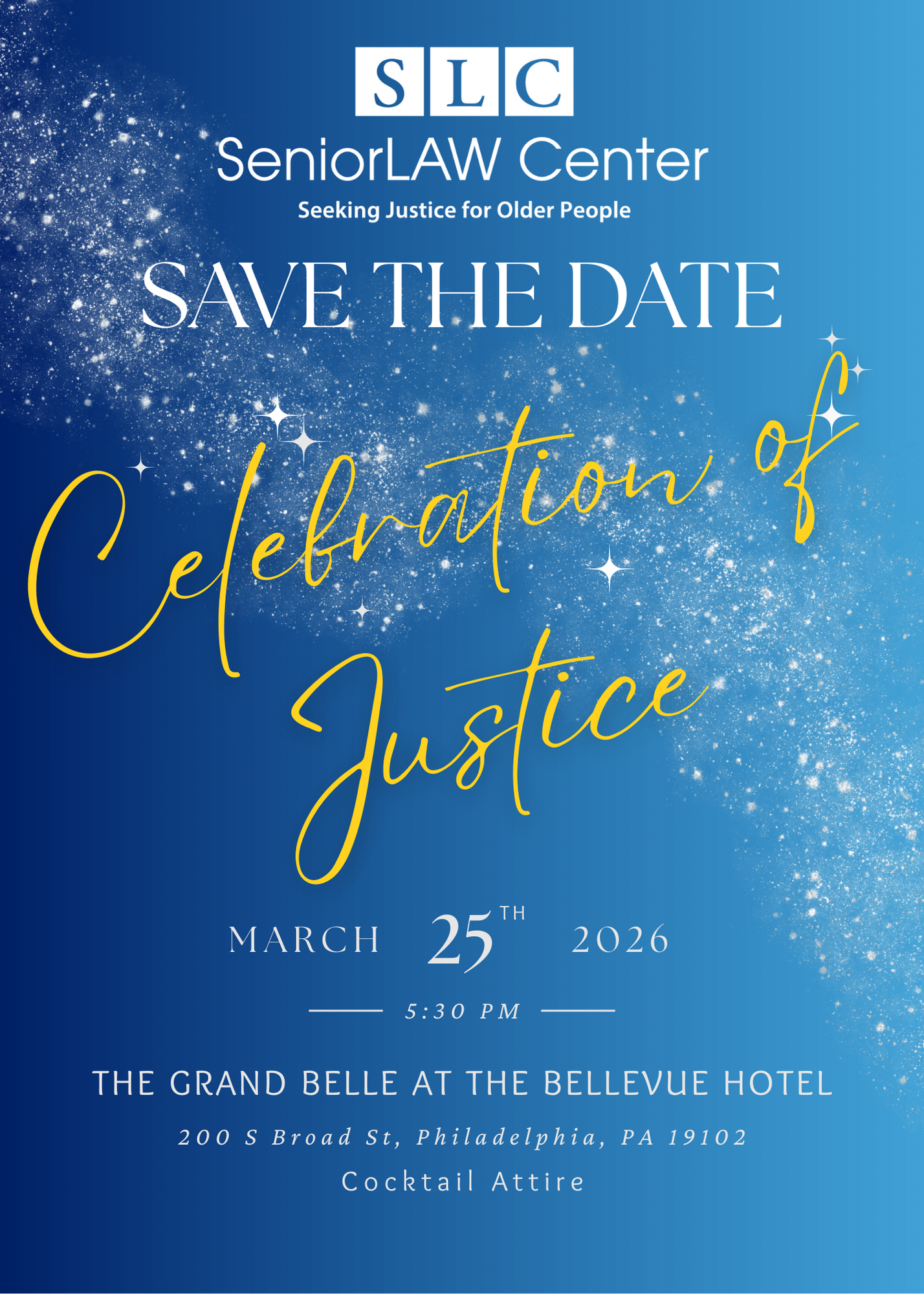 Join Senior LAW Center at The Bellevue Hotel Philadelphia, located at 200 S Broad Street, starting at 5:30pm for the Celebration of Justice.
